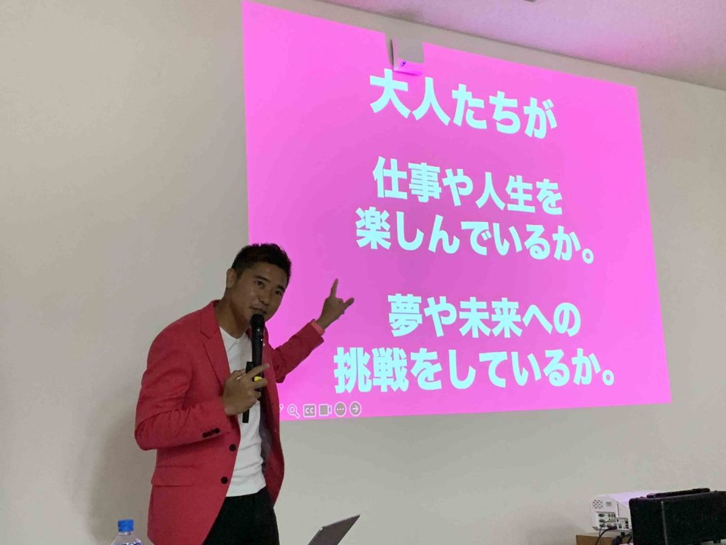 11月1日、湖南地区研修会が開催され、野洲高校出身の元Jリーガー、現在は株式会社人生最幸 代表取締役として幅広くご活躍の村田和哉 様より「夢を叶える力を育てる」というテーマで講演をいただきました。県内の小中学校を中心とした講演活動や、地域を巻き込んでサッカーの楽しさを伝え、夢をもつことの大切さを知ってもらうという活動内容やご自身の夢を熱く語ってくださいました。夢を叶えるには、夢を口に出したり、ノートに書いたりしてイメージを持つことが重要であり、われわれ大人もまだまだ様々なことに挑戦し、その後姿を子どもたちに見せることの大切さを感じる有意義な学びの機会となりました。